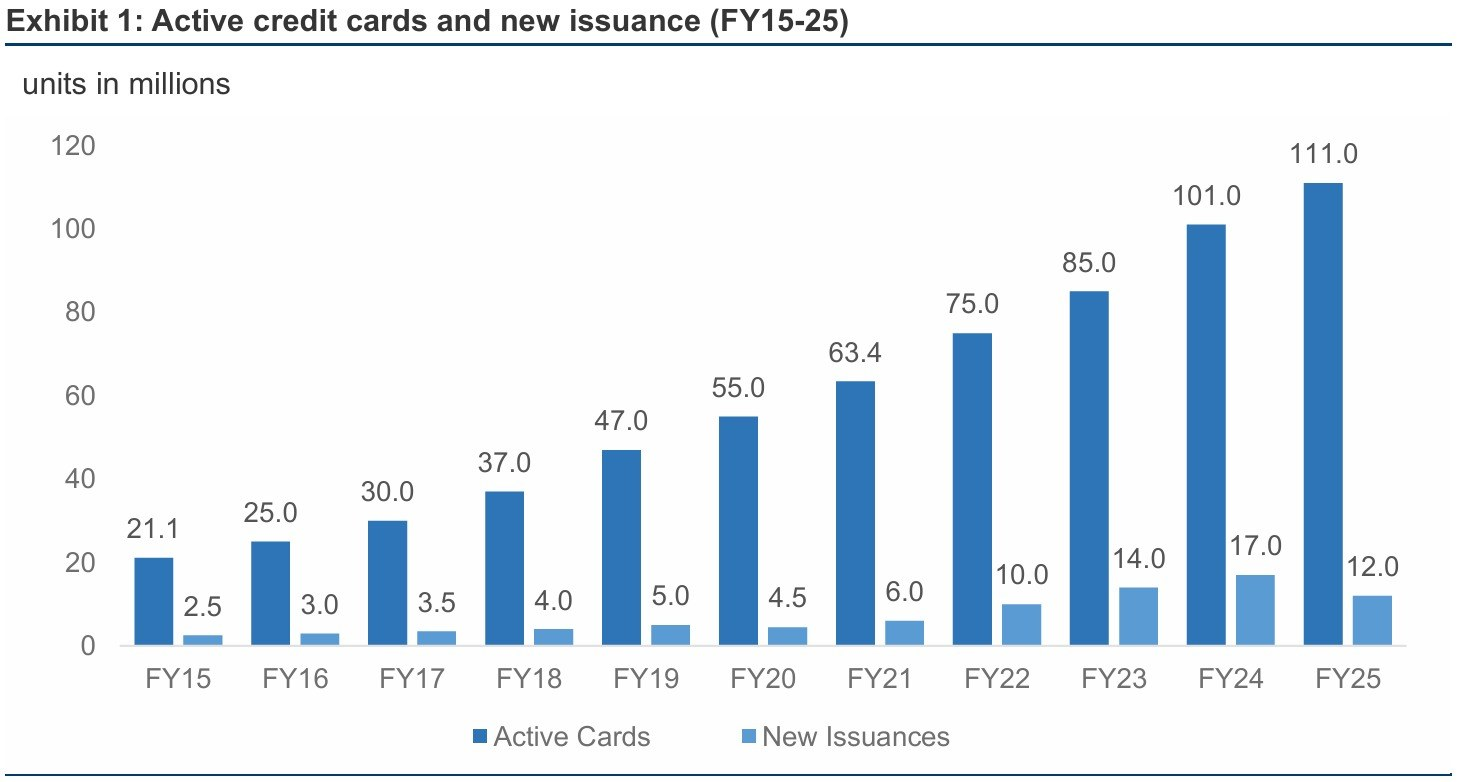 Let’s take credit cards, for instance: the number of cards approved has been steadily increasing over the last few years. From FY12 to FY25, the number of active credit cards surged 5x, and by the end of December 2024, there were over 100 million active credit cards in India.
