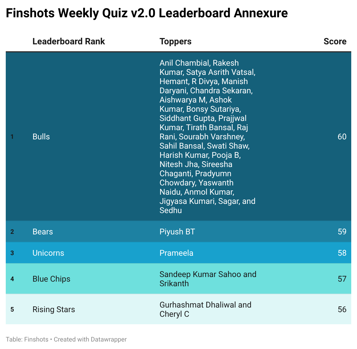 If your name has been featured on the leaderboard, then congratulations! If not, don’t lose hope. If you attempted last week’s quiz, keep at it and answer all the weekly quizzes this month. You never know when the turntables! Click on this link to take this week’s quiz, which is open till 12 noon, Friday, 20th of March, 2026. The more answers you get right, the better your chances of appearing on the Finshots Weekly Quiz leaderboard. We’ll publish it every Saturday in the Weekly Wrapup. And the winner will be announced in the first week of April.