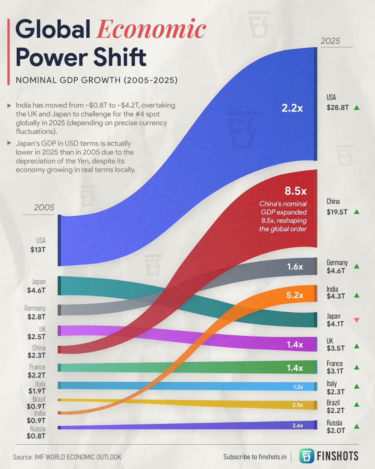 In 2005, the global leaderboard looked unrecognizable, with China just finding its footing and India sitting at the bottom of the top ten. Today, the map has been redrawn.