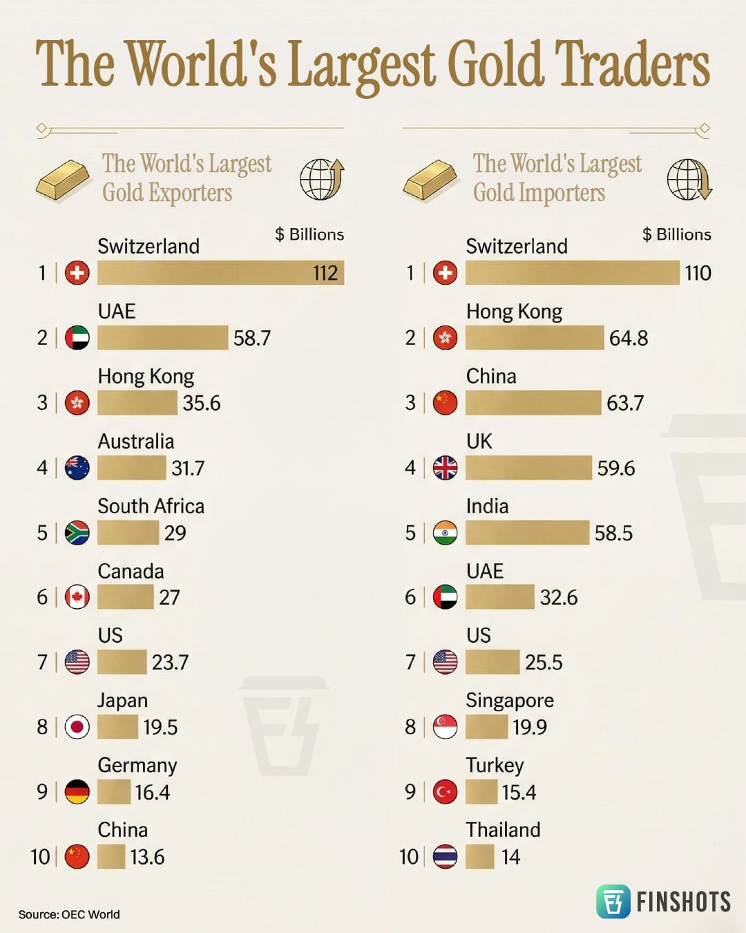 Dubai is one of the world’s most important gold trading hubs. In fact, about 20% of the world’s gold passed through Dubai last year, making it the second-largest hub after Switzerland.