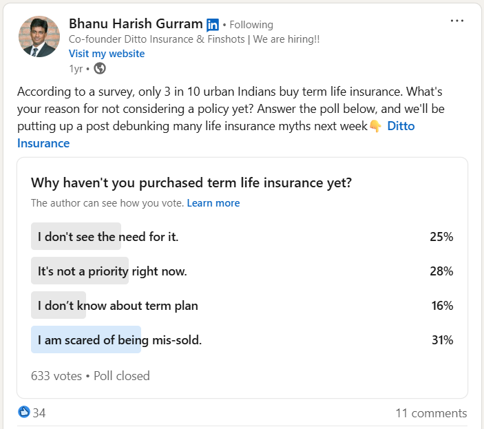 Our co-founder asked people why they avoid Term Insurance. The top reason? Right here. 👇🏽