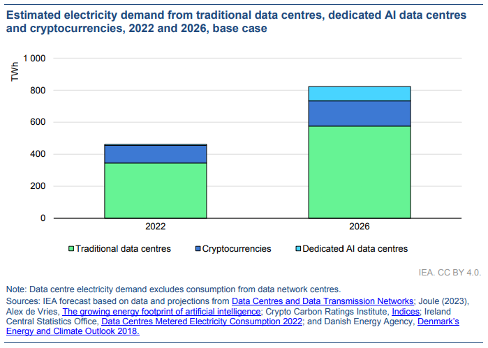 AI’s energy demand is set to go from just 8 TWh in 2024 to a staggering 652 TWh by 2030. That’s over an 80x increase in electricity consumption just by AI in 6 years. We can clearly see increased demand in this estimate by the IEA: