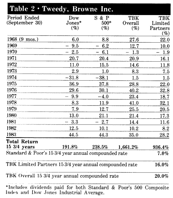 All the investors in that pack from Walter Schloss, Bill Ruane, and Tom Knapp followed the same philosophy. And to see how powerful it proved to be, look no further than Tom Knapp, and his firm Tweedy, Browne partners.