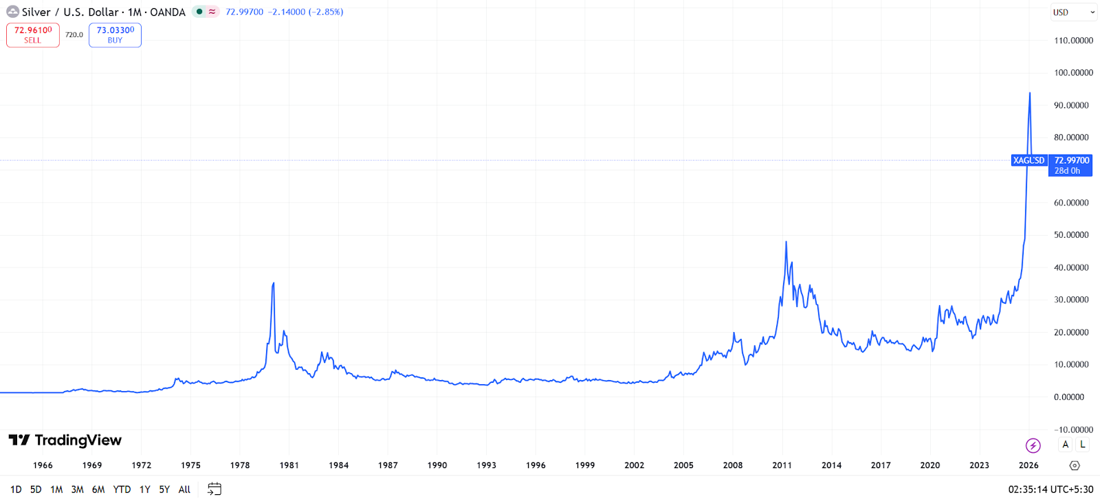 However, over a 42-year horizon between 1983 and 2026, silver's compounded annual growth rate is still around 10.5%. But because silver is driven by both precious metal sentiment and industrial demand (like solar panels and electronics), it acts less like a steady compounder and more like a high-swing asset.